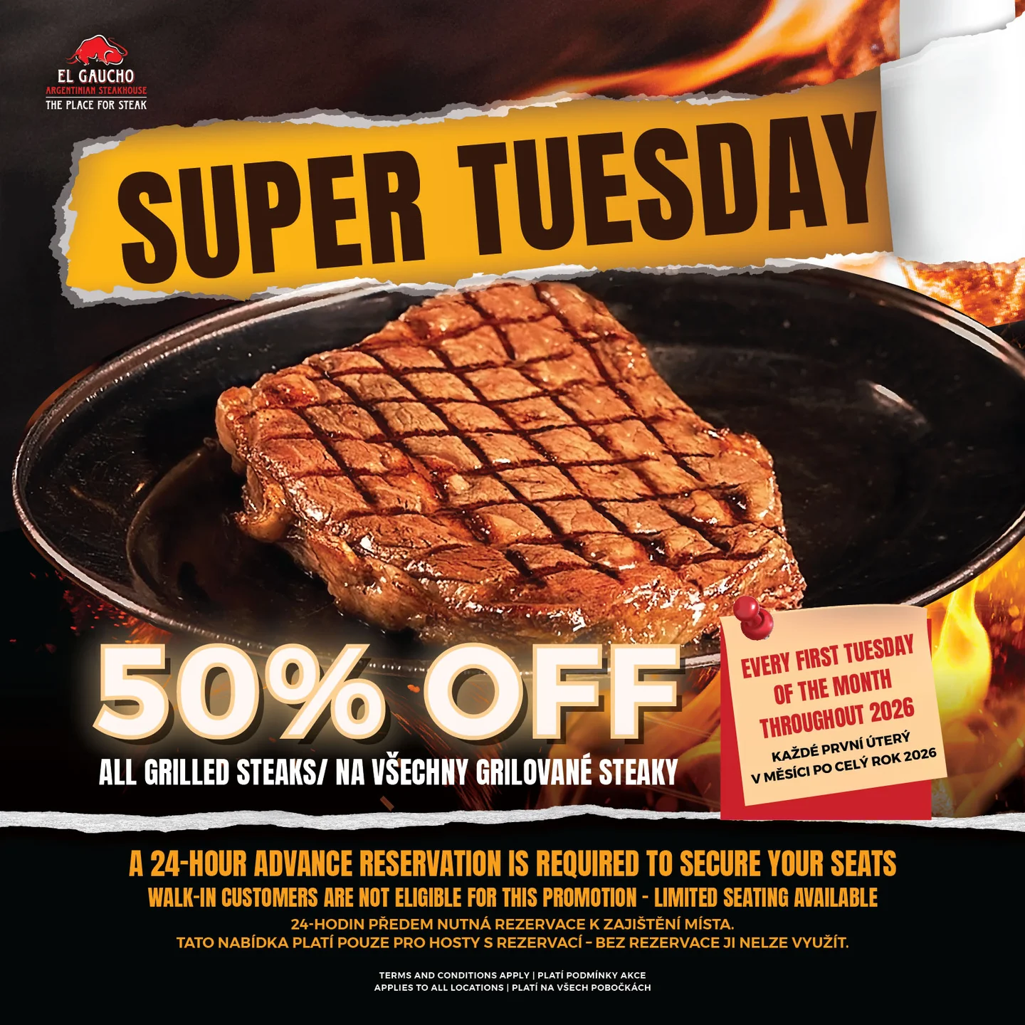 Enjoy 50% OFF all grilled steaks on SUPER TUESDAY!