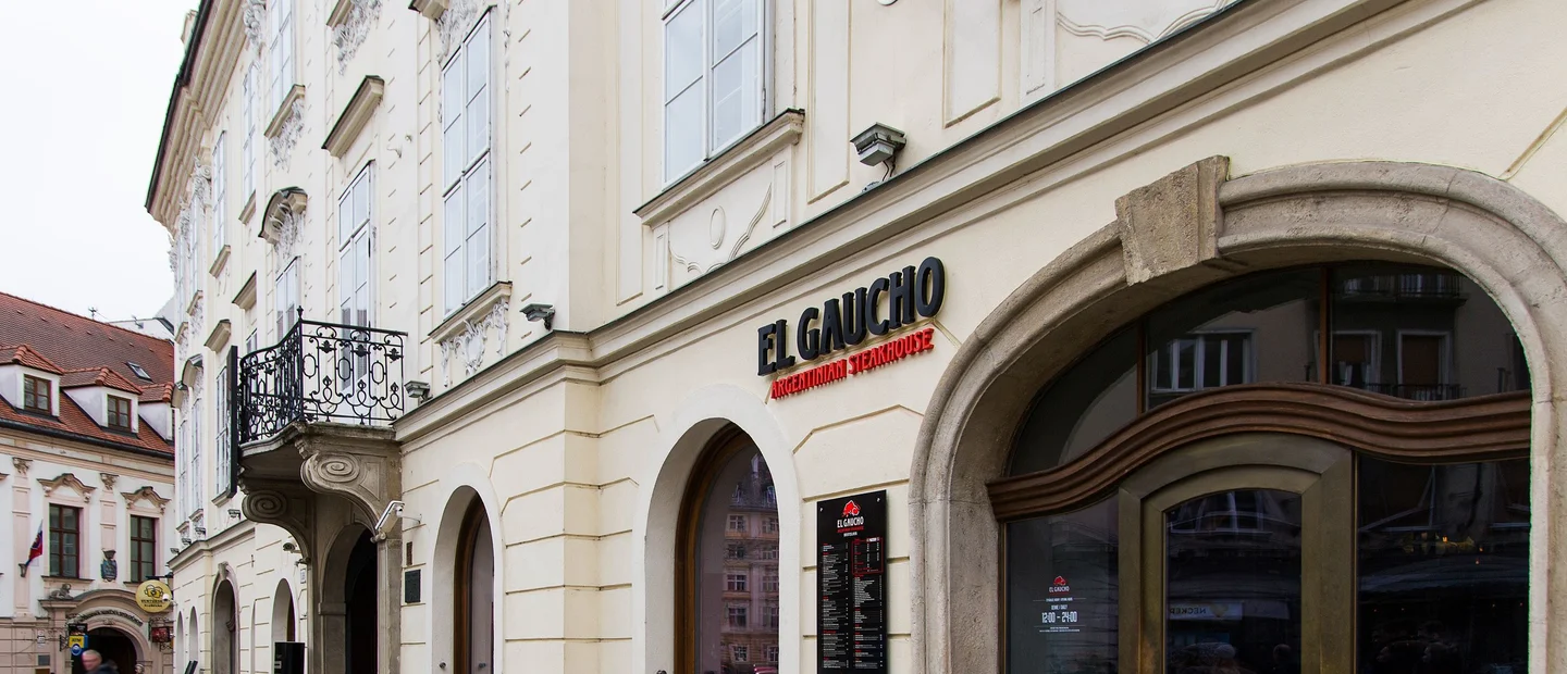You can find El Gaucho in landmark building of Erdödy Palace on Ventúrska street 1 and enjoy elegant enviroment and inviting atmosphere at the bar or one of restaurant areas. Original arched ceilings and large windows to the summer terrace add unique charm and unhurried ambiance. Each of two restaurant rooms can be booked for private events.