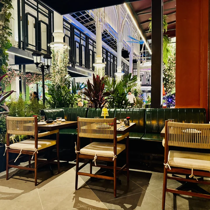 The venue features refined indoor seating with a welcoming and stylish atmosphere. A designated smoking area is available nearby, and parking is accessible within the Jungceylon complex.