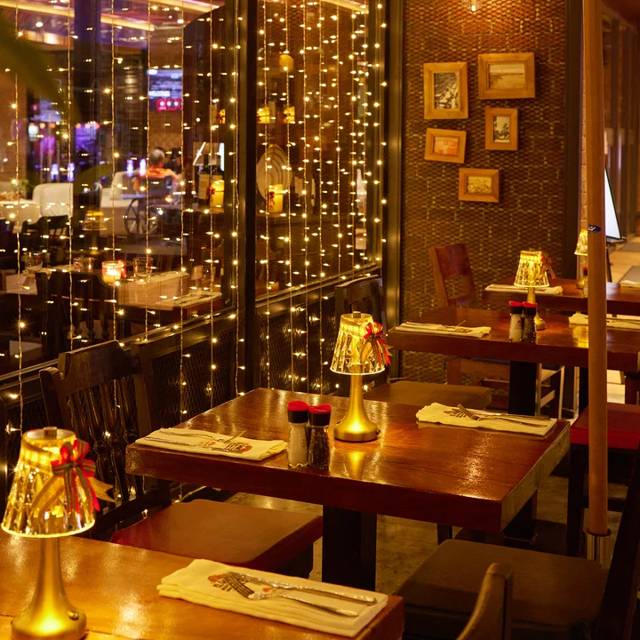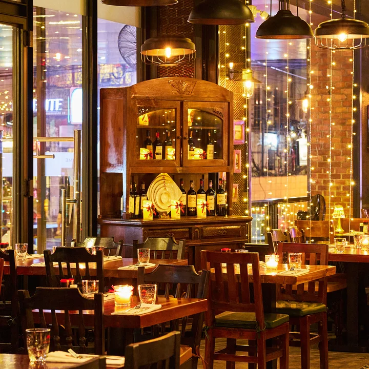 Our main dining area offers a cozy and elegant atmosphere with air-conditioning, stylish interiors, and warm lighting. It’s perfect for enjoying your meal in comfort no matter the weather outside.