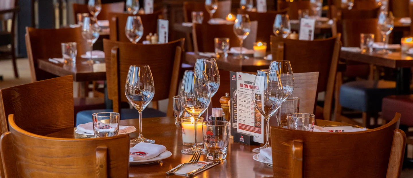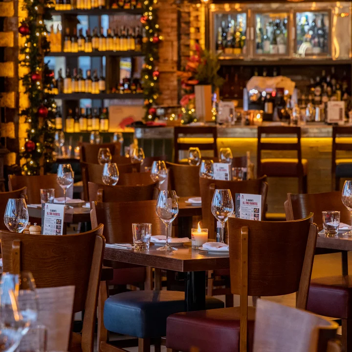 The indoor dining room blends the timeless spirit of a classic steakhouse with contemporary design. Warm interiors, soft lighting, and refined details create an elegant yet comfortable setting.