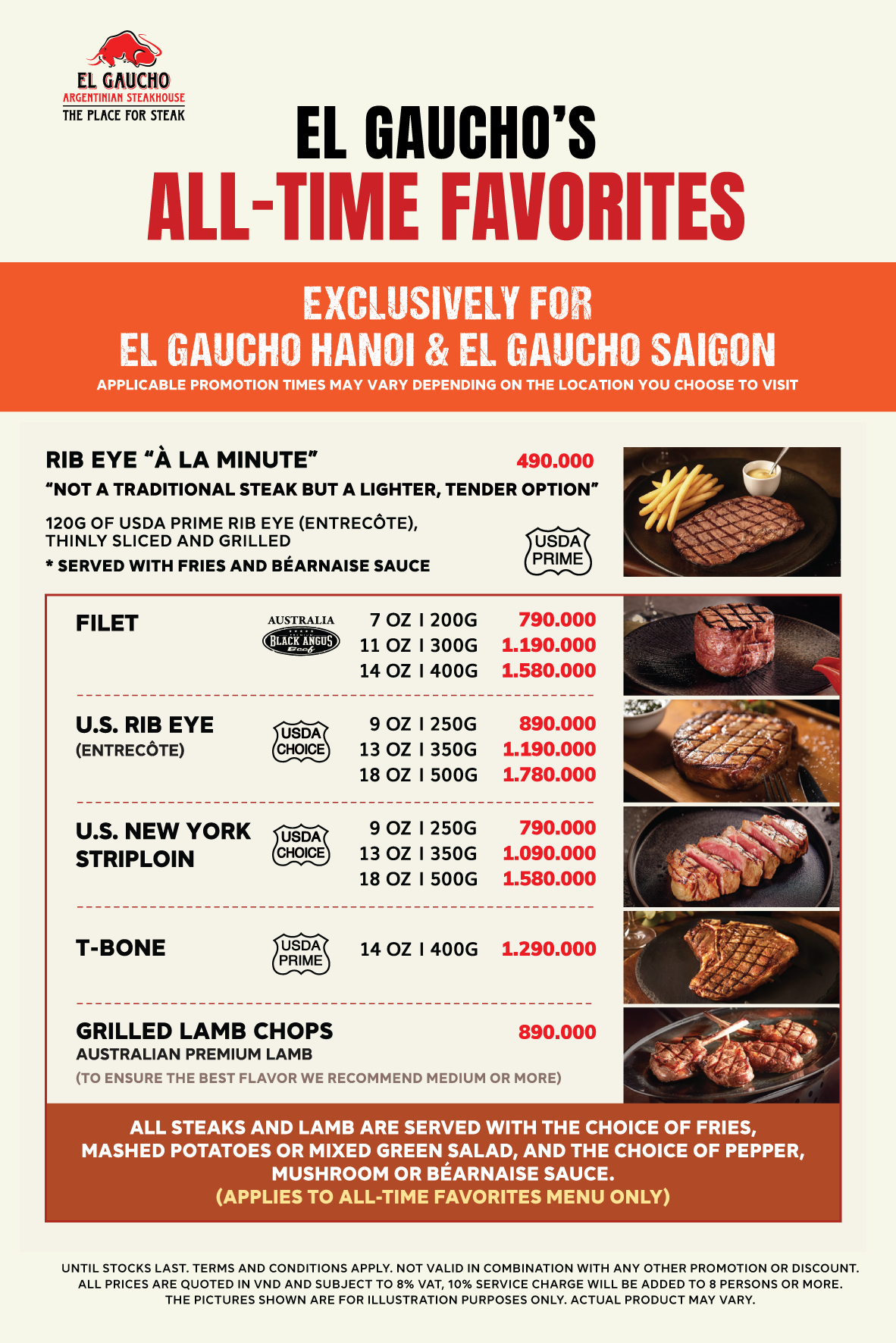 ❤️🔥 By popular demand, our All-Time Favorites (ATF) menu is now available at ALL El Gaucho locations across Vietnam, Thailand, Czechia & Slovakia!🔥